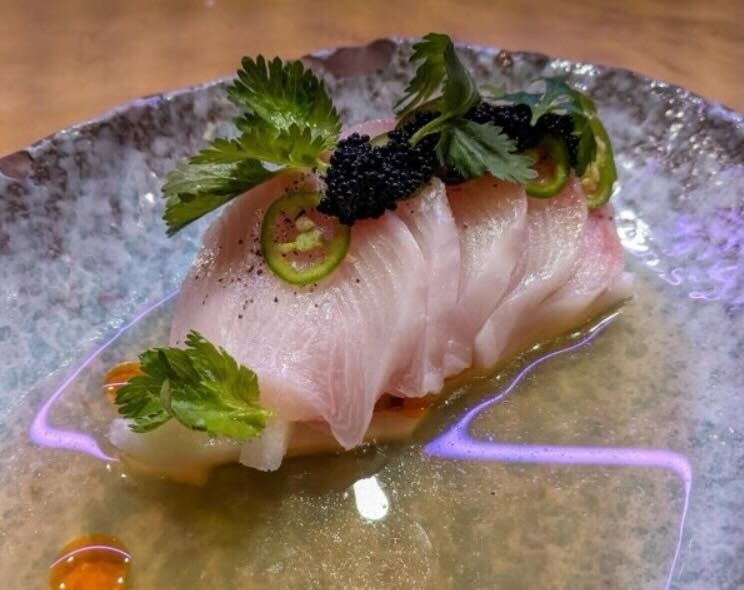 Dutch yellowtail, serrano, asian pear, coconut water ponzu, red curry oil, cilantro