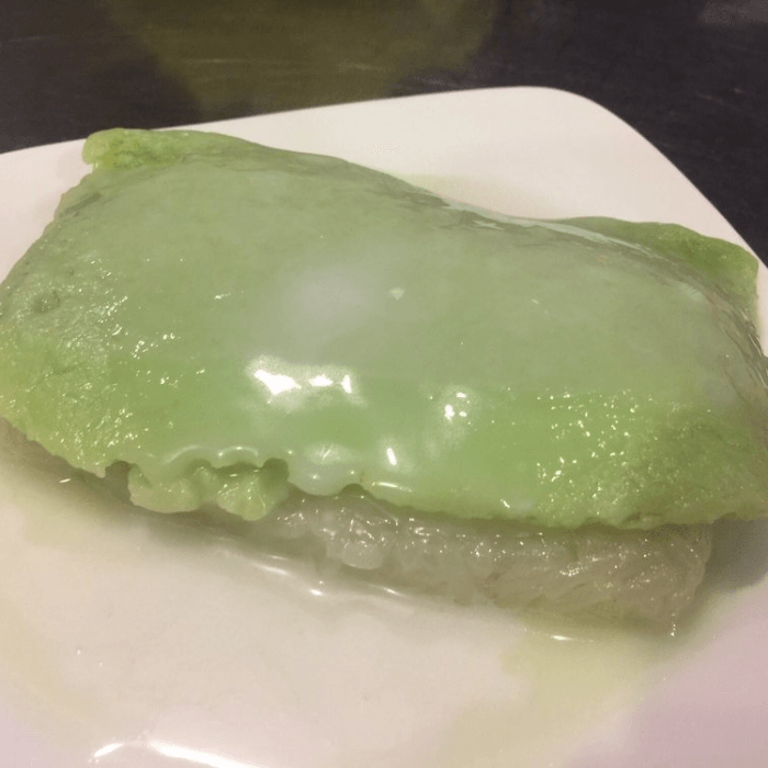 4 steam dumplings filled with pork and water chestnuts served with the dark sweet ginger sauce.