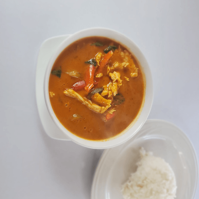 Yellow curry blended with coconut milk and your choice of meat, potatoes, onions