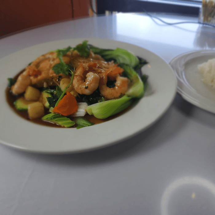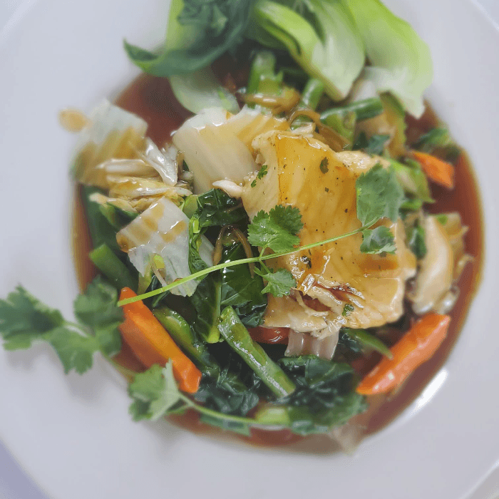 Chinese broccoli, mushrooms, carrots, zucchini, napa cabbage and bean srpouts in our homemade sweet brown soy sauce.