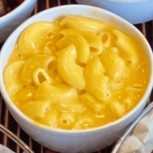 Mac and Cheese, spicy huacatay sauce, pulled rotisserie chicken, and fresh parmesan cheese