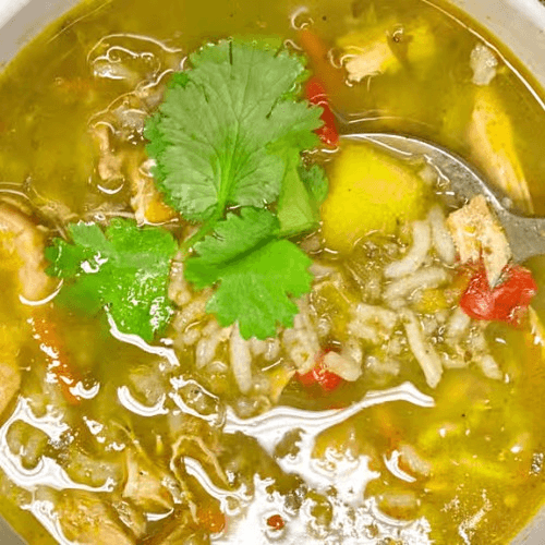 Vegetables, cilantro, aji amarrillo, rice, chicken