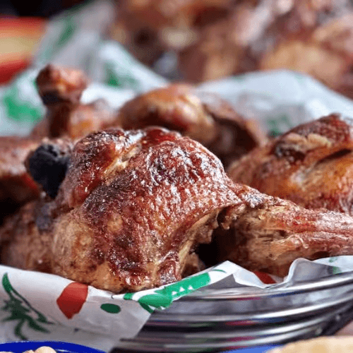 1 whole chicken cut into 4 pieces. Complementary canchita or 8 fresh white corn tortillas & 2 sauces