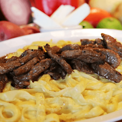 Noodles in a lima-style sautéed. Made with beef, chicken or vegetarian. Served with onions and tomatoes