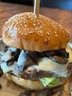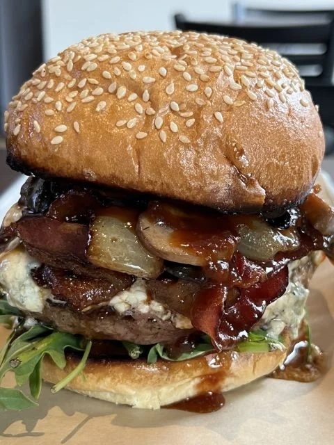 Angus Beef*, Gruyére Cheese, Bacon Onion Jam, Pickled Red Onions, Lettuce & our house-made Roasted Garlic Aioli