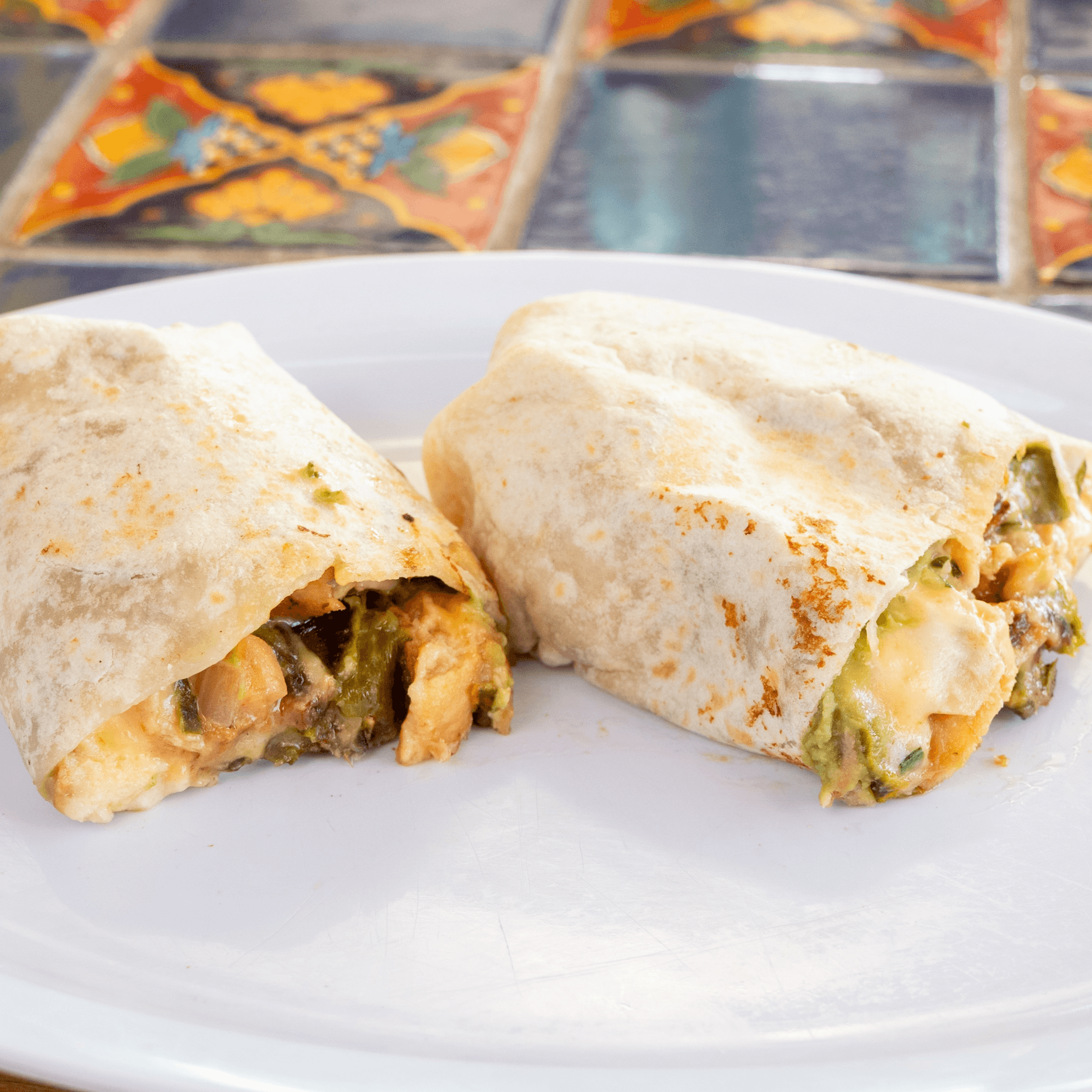 Our Poblano Burrito brings authentic Mexican flavor: a poblano pepper stuffed with melted cheese, paired with fresh pico de gallo and creamy guacamole, all wrapped in a big warm tortilla.