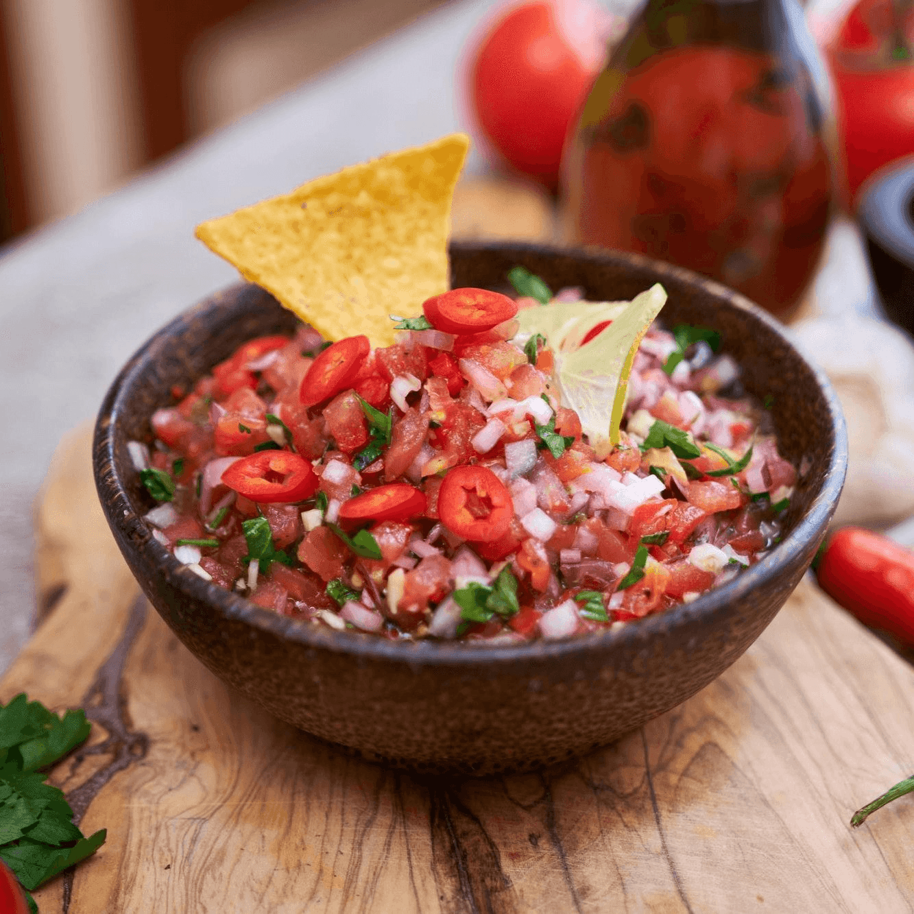 An irresistible classic: golden crispy tortilla chips served with our fresh homemade salsa made from ripe tomatoes, onions, cilantro, and a hint of chile.