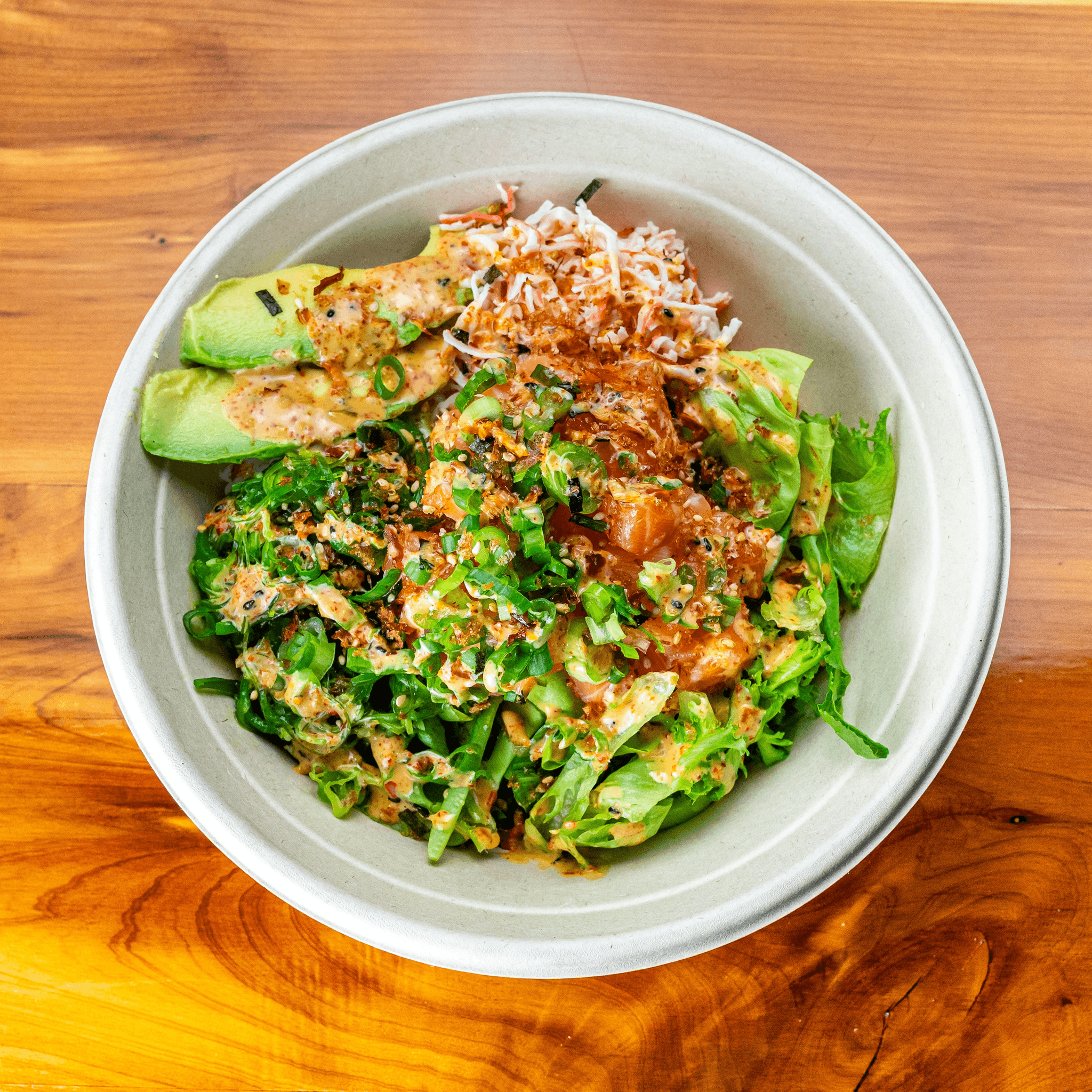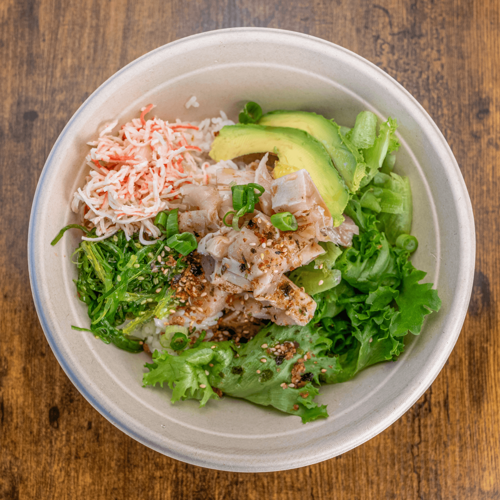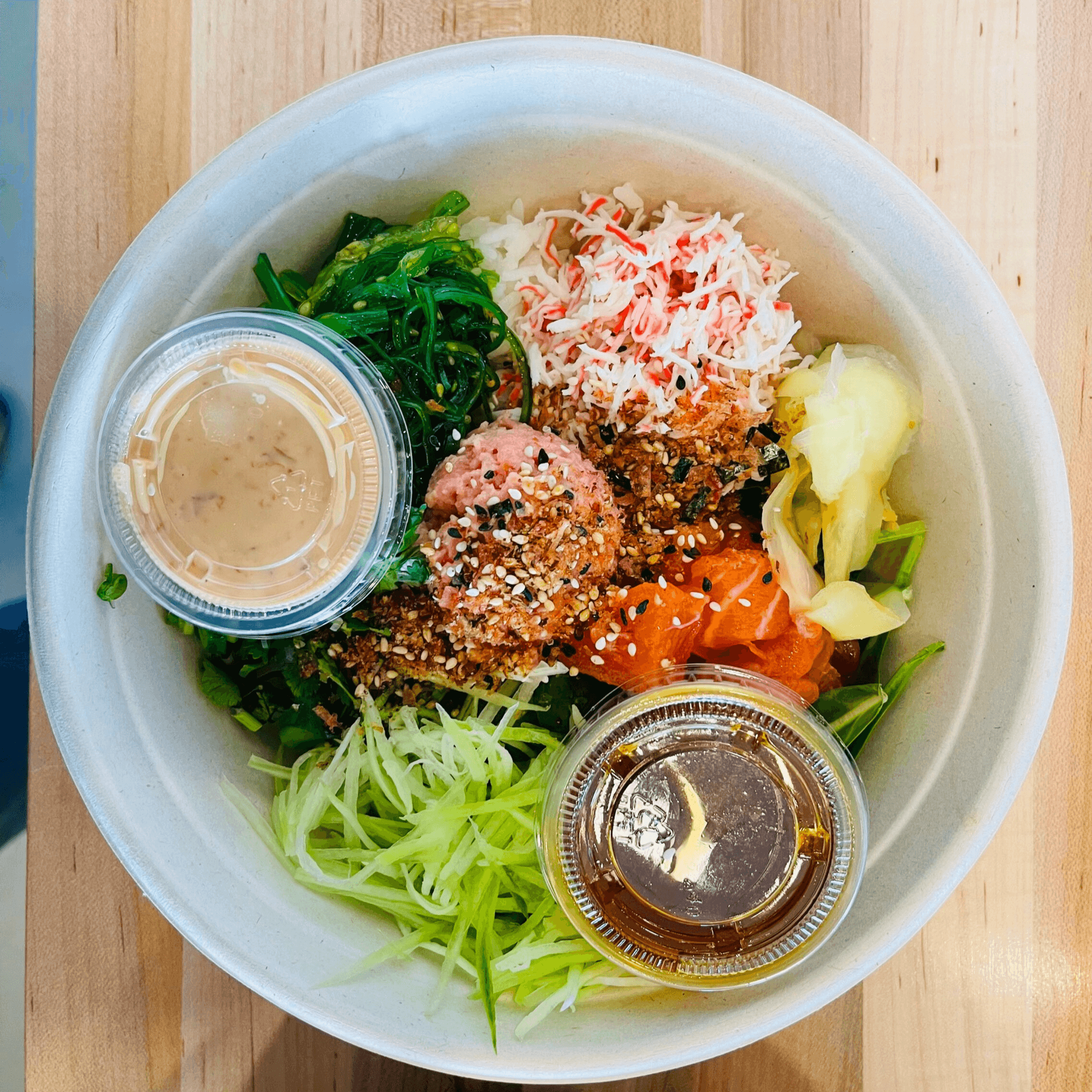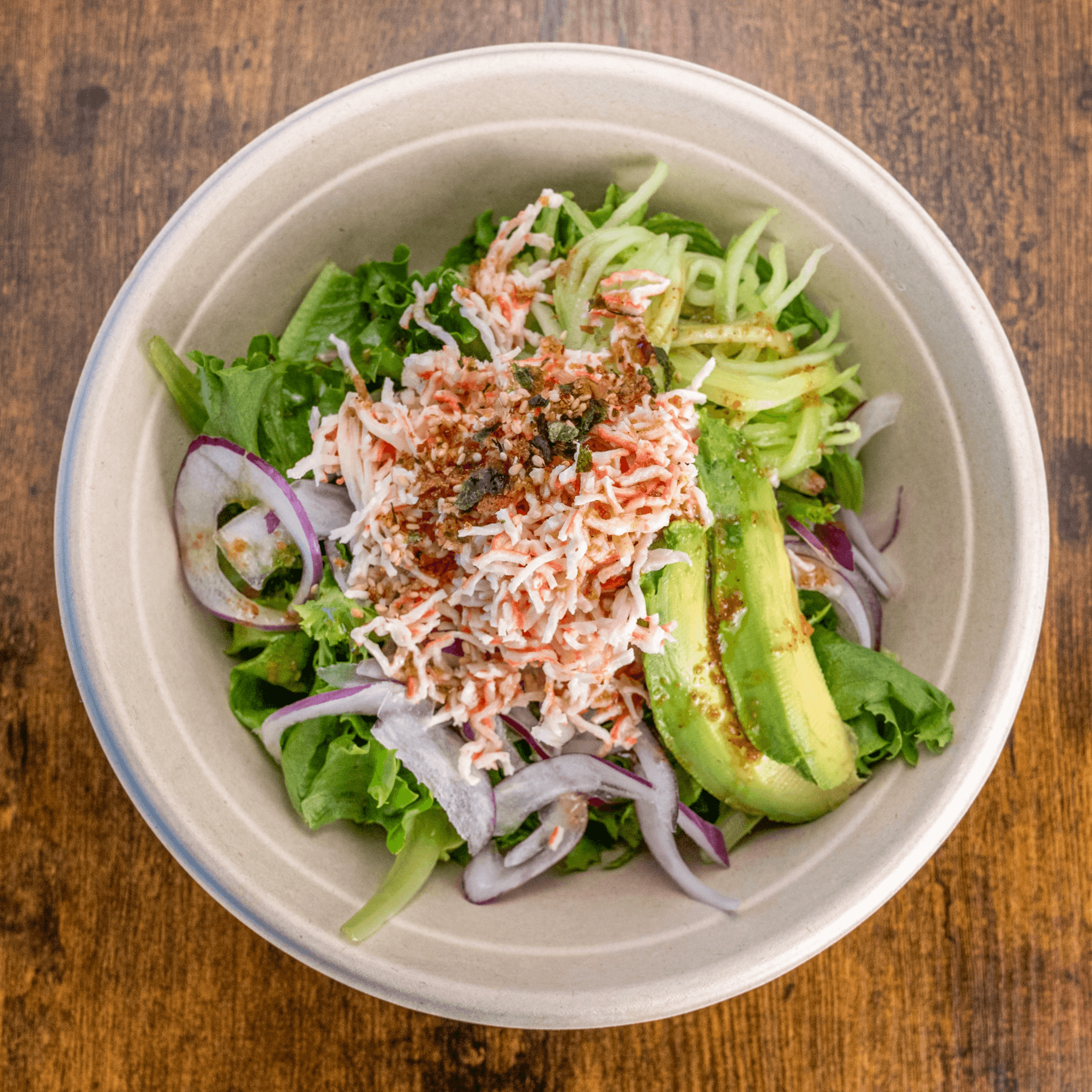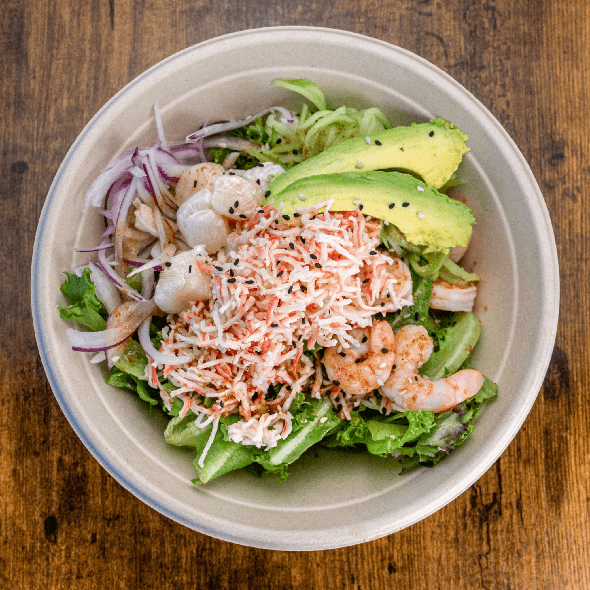 Crab, scallop, shrimp, avocado, cucumber, ponzu, sesame oil