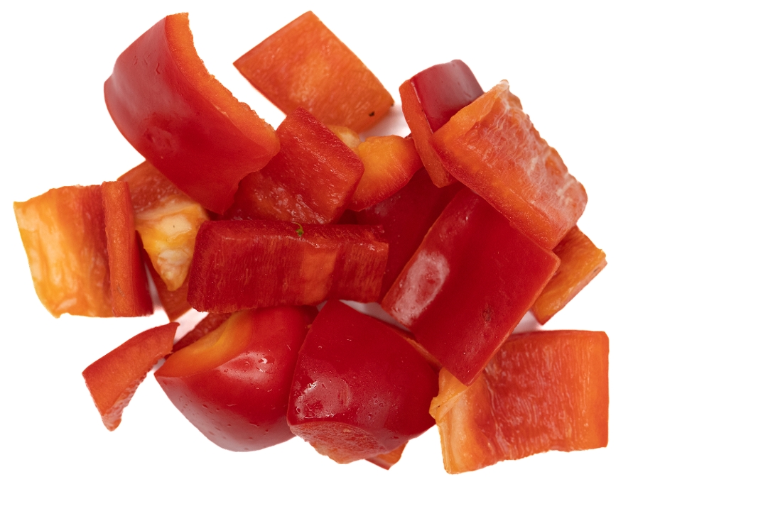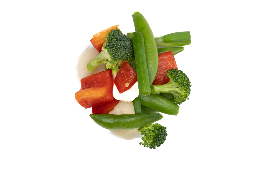 Red bell pepper, snap peas, water chestnuts, bamboo, broccoli