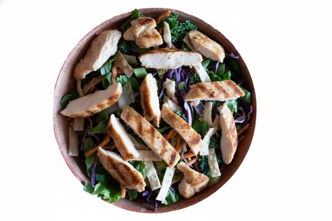 Romaine, kale, green onion, red cabbage, carrots, wontons with chicken breast You choose your salad dressing.