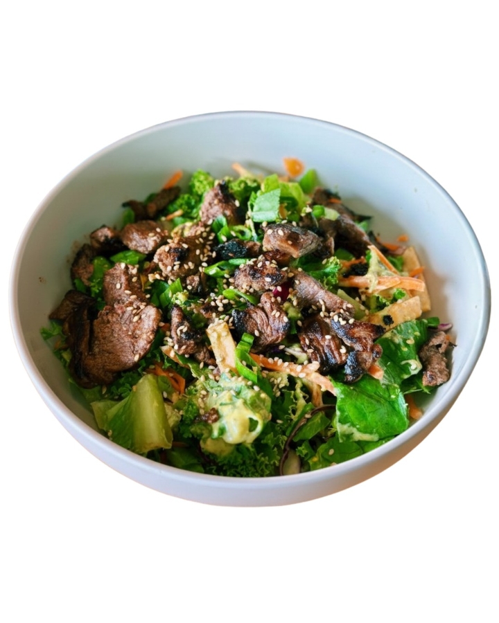 Romaine, kale, green onion, red cabbage, carrots, wontons with beef tenderloin You choose your salad dressing.