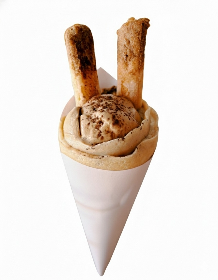 Marscapone mousse, espresso gelato, espresso lady fingers, whipped yogurt, cocoa powder, wafer crunch flakes
