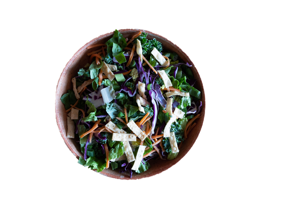 Romaine, kale, green onion, red cabbage, carrots, wontons with tofu You choose your salad dressing.