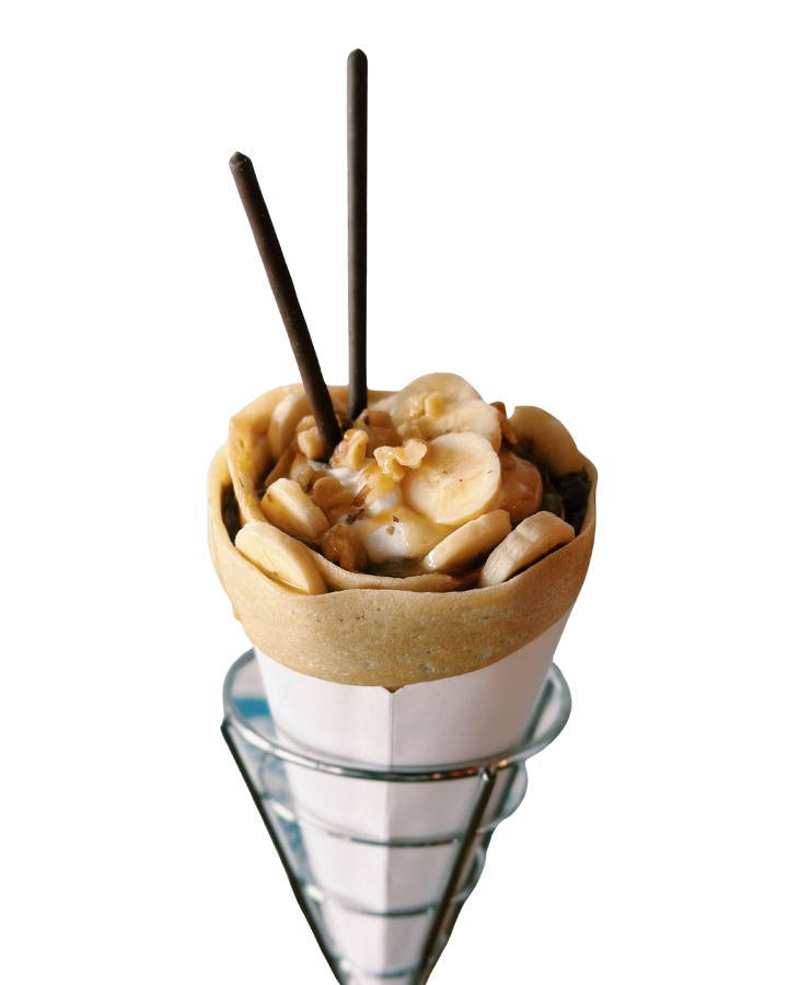 Nutella, banana, strawberries, whipped yogurt, chocolate custard
