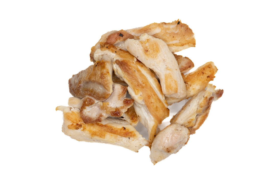 Double dark chicken, teriyaki sauce, sesame seeds over rice.