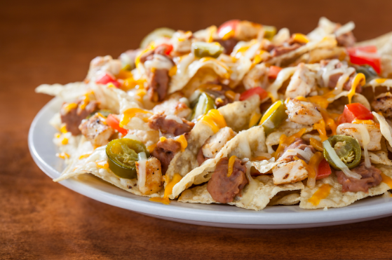 Corn tortilla chips with refried beans, jack & cheddar cheese, diced tomatoes, pickled jalapenos & choice of grilled chicken, picadillo beef, housemade pulled pork or grilled veggies. Served with sour cream & salsa