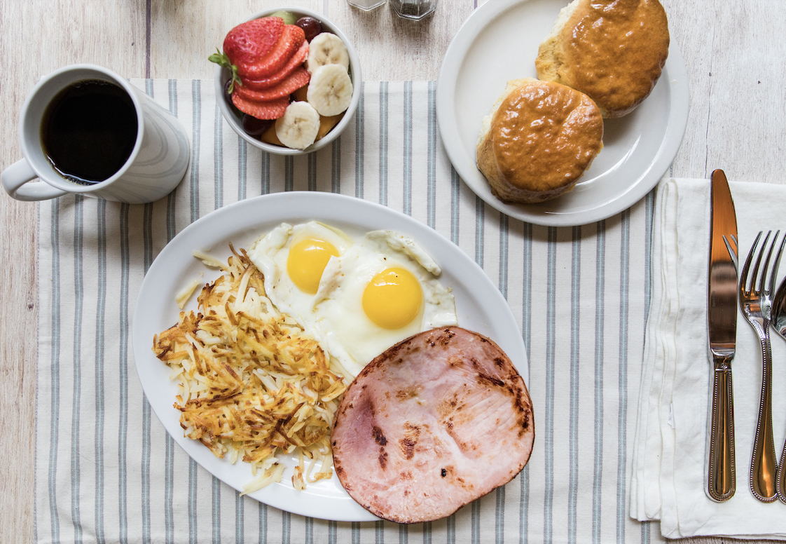 Two eggs any style & hashbrowns. Served with bacon, sausage or ham & homemade biscuit, toast or an English muffin