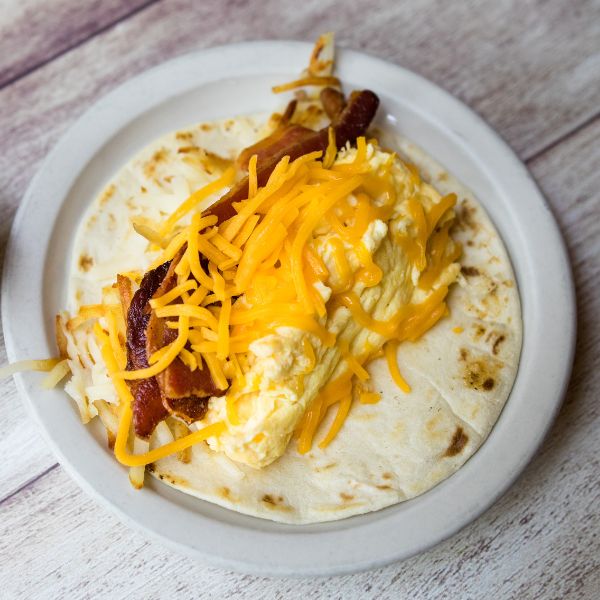 Egg, hashbrowns, bacon or sausage & cheddar cheese
