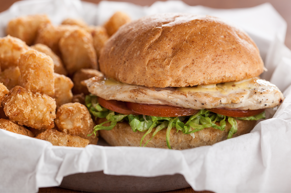 Includes choice of hand-cut French fries, sweet potato waffle fries, tater tots, onion rings, seasonal vegetables or fresh fruit cup. Served with milk, juice or handcrafted soda and an ice cream cup.
