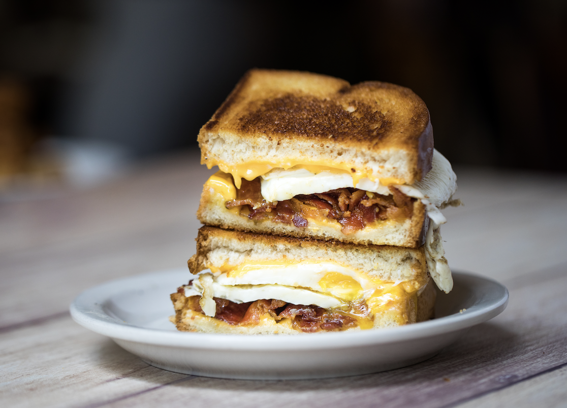 Two eggs any style, American cheese & your choice of bacon, sausage or ham on toast or a bun. Served with hashbrowns