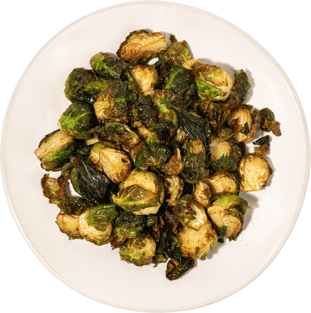 These brussels have everything. Crispy crunch, savory basil, and a sweet creamy citrus dipping sauce. There's nothing about these you won't love.