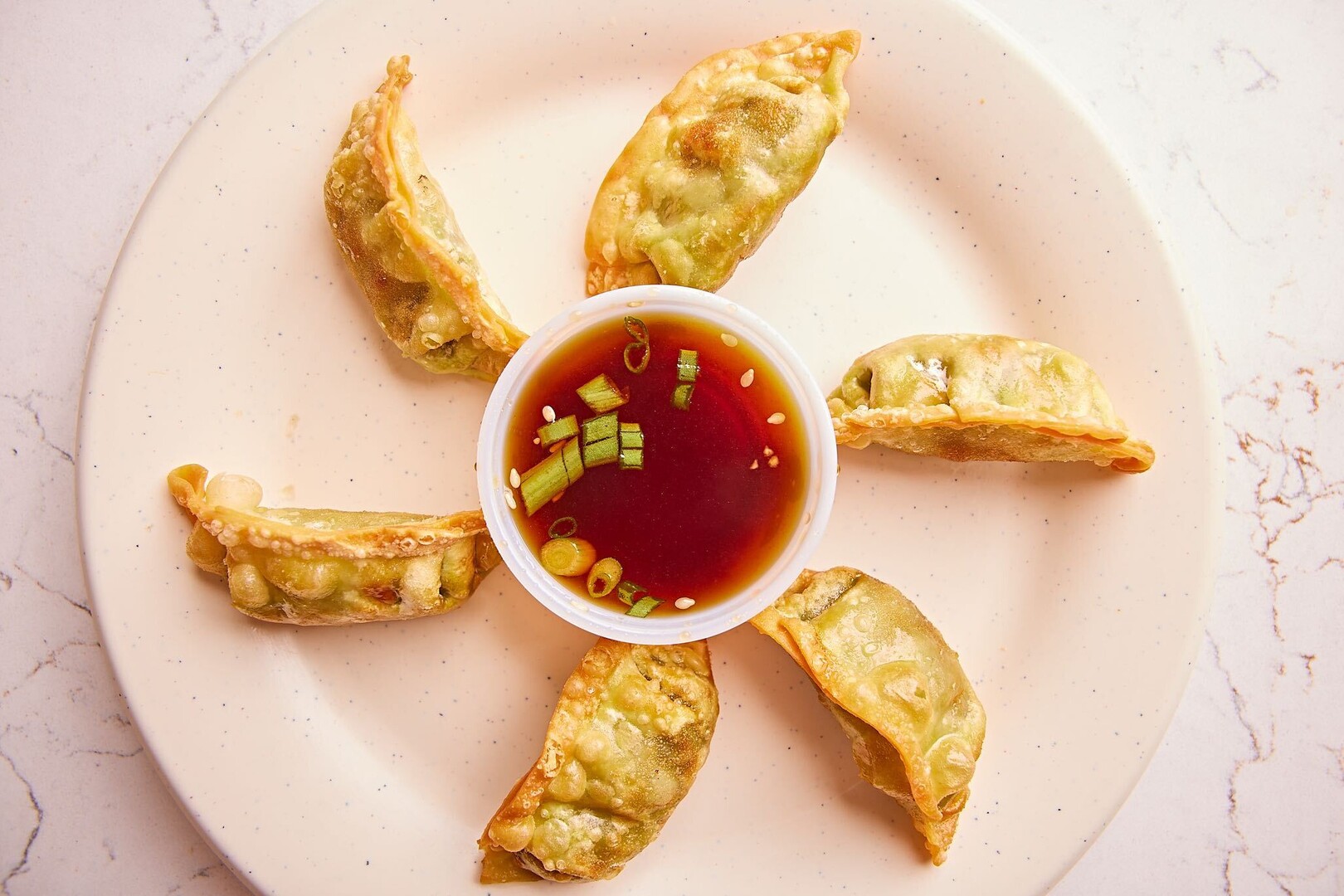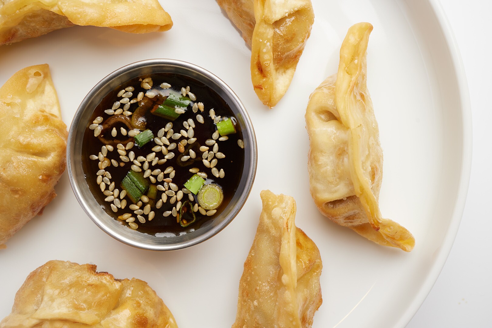 Pork, onions, green onions in wonton skin, served w/ house soy garlic sauce. 6 pcs.