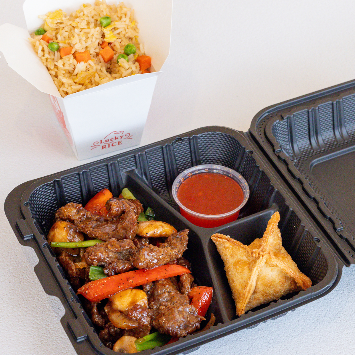 Tender steak, bell peppers, mushrooms, onions, and green onions stir fried in a peppery brown sauce.