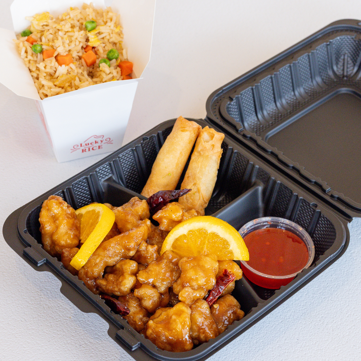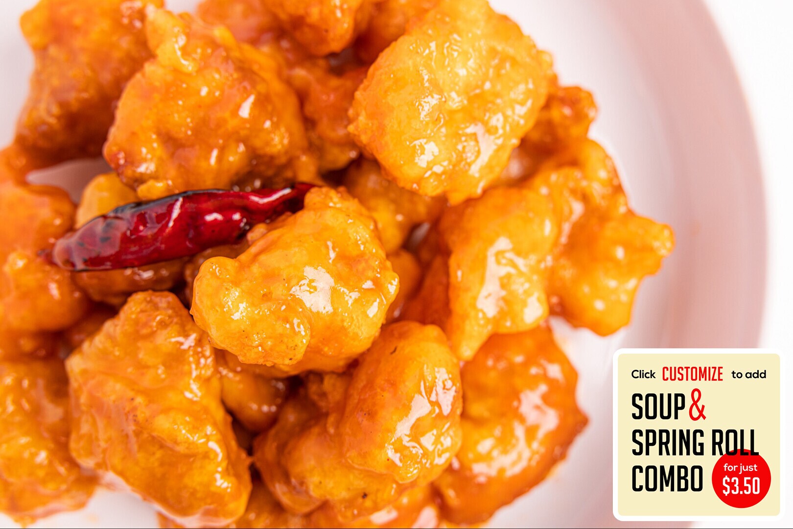 Batter-fried in General Tso’s sweet & spicy sauce with delectable shrimp and crunchy broccoli & spicy peppers (optional). Available in a Tso bowl & our classic entree portions!