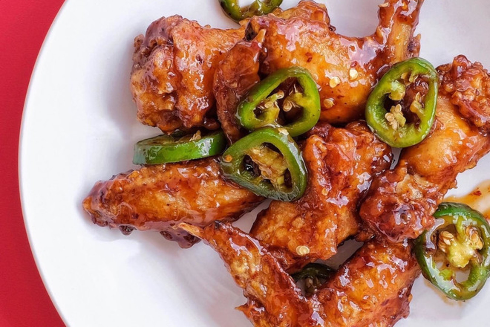 chicken wings, sliced jalapenos, tossed in a sweet & spicy sauce