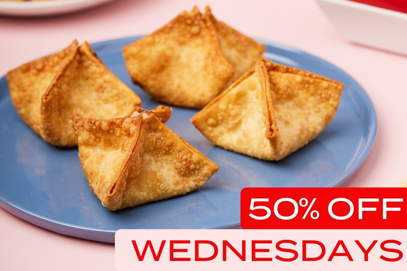 Crowd favorite. Our 100% Real Blue Crab Rangoons are the best in Texas and truly world-famous! Order on Rangoon Wednesdays for 50% off your order of World Famous Blue Crab Rangoons! REAL blue crab meat, Philadelphia cream cheese, yellow & green onions & spices wrapped in a fried wonton No imitation crab here! (4pc)