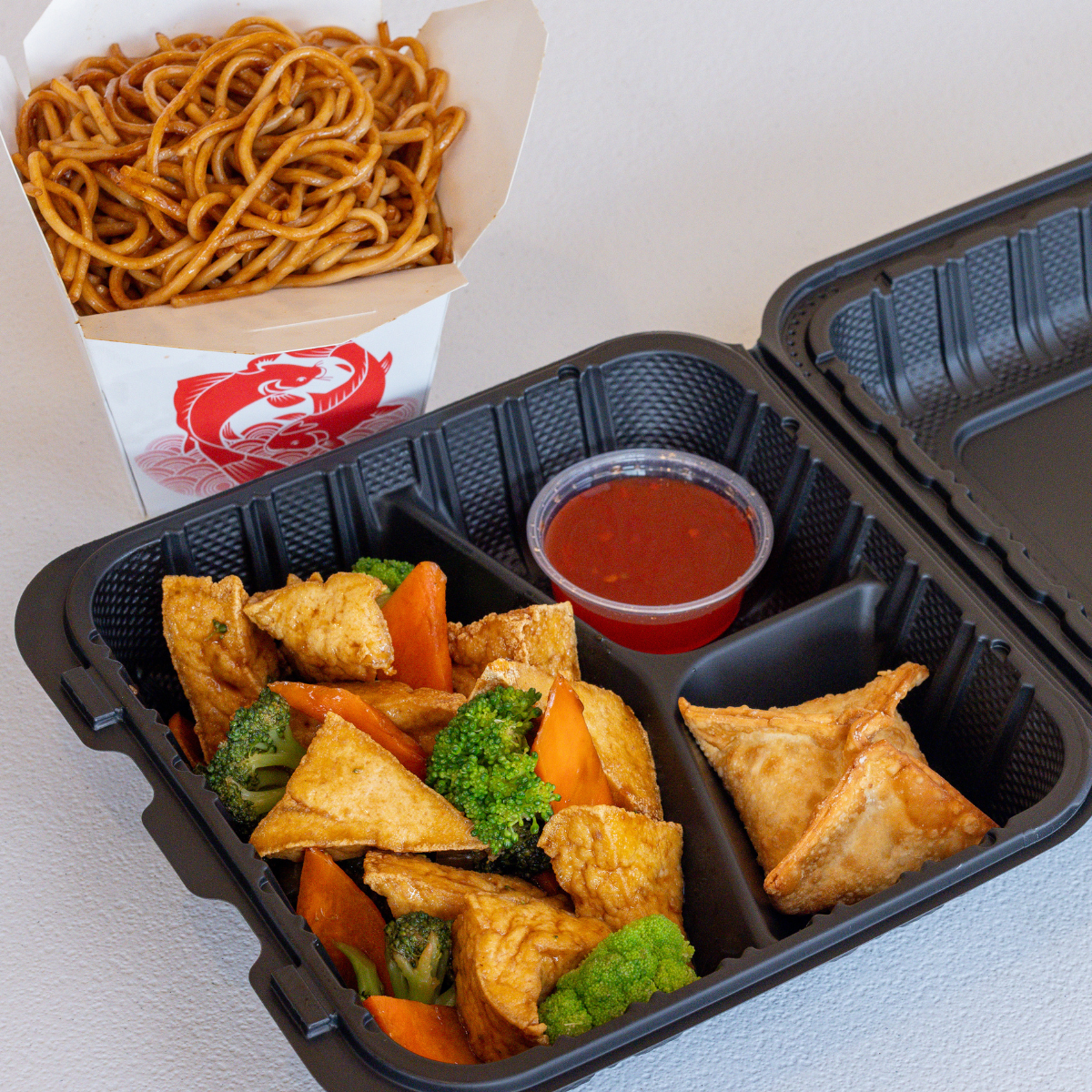 Savory fried Tofu, crunchy water chestnuts, with delicious mushrooms and carrots, topped with green onions and served with our house-made hoisin sauce. Guaranteed to be your new go-to favorite!