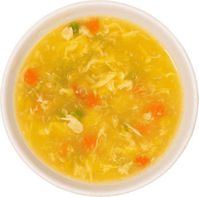 Vegetarian. eggs, peas, carrots, corn in a savory vegetarian broth