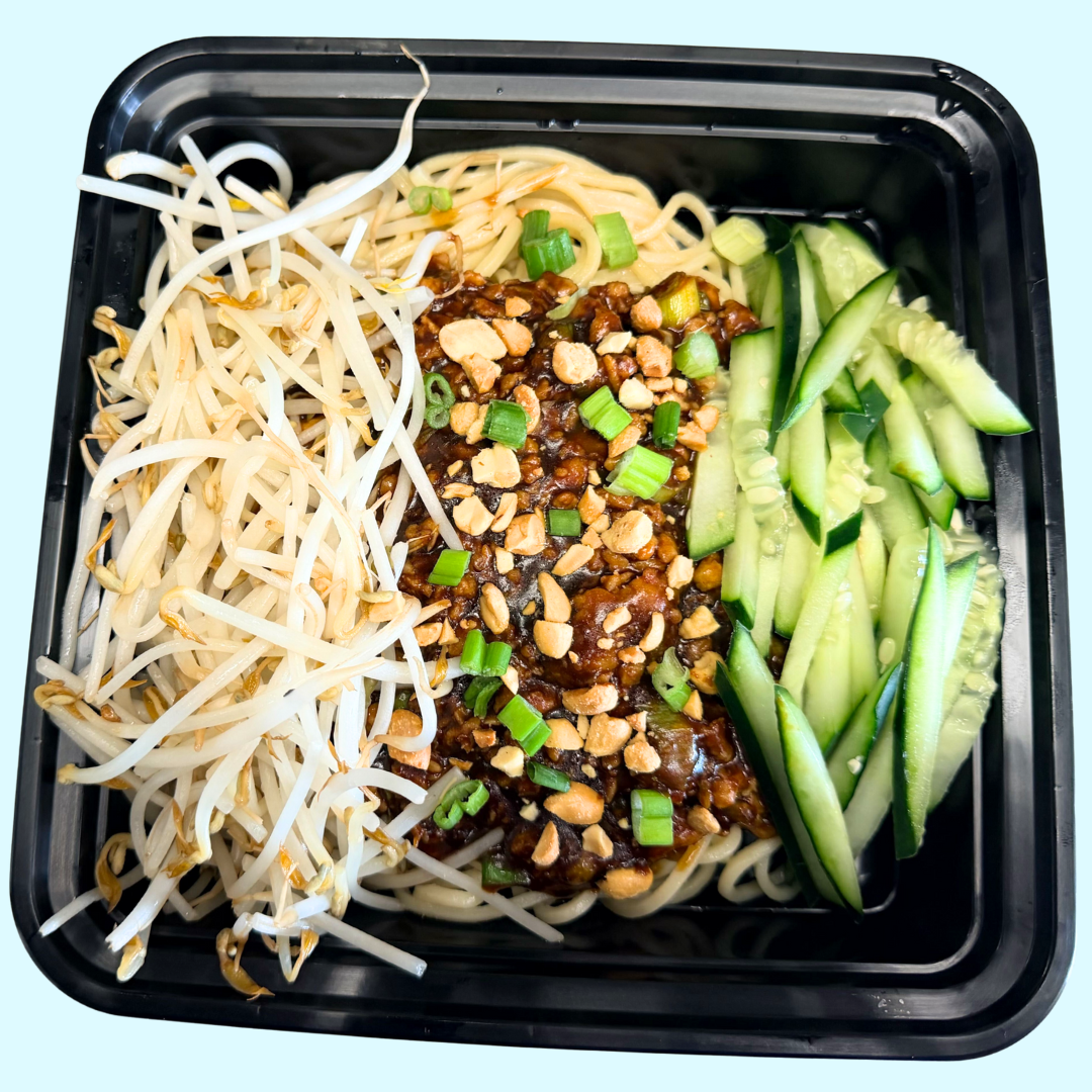 Dan Dan good and dangerously addictive. Egg noodles topped with a dark, spicy peanut-sesame sauce, loaded with minced chicken, crisp cucumbers, and fresh bean sprouts. Finished with crushed peanuts and green onions because texture is everything.