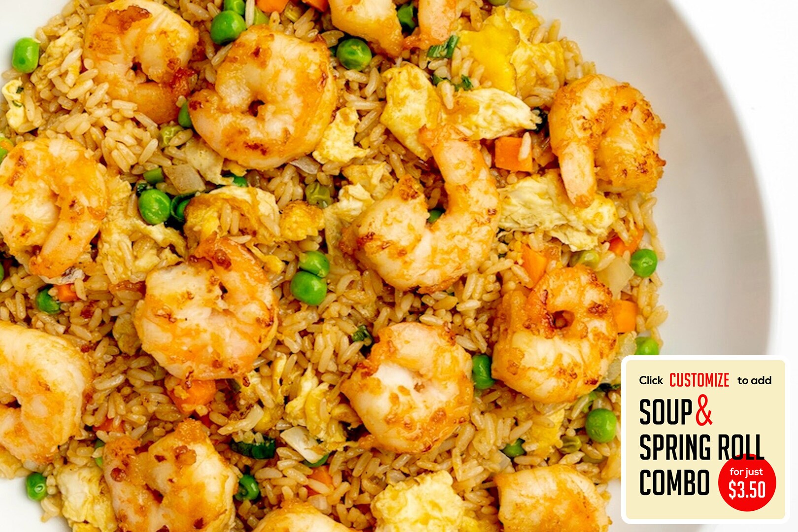 Shrimp stir fried w/ rice, eggs, peas, carrots, onions, green onions